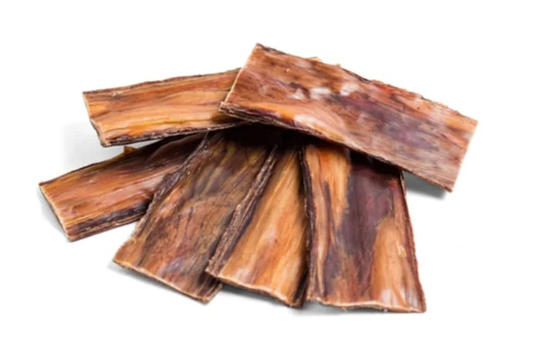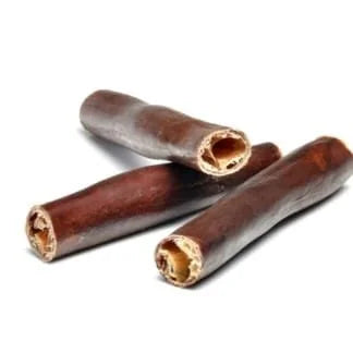 100% natural, dehydrated beef gullet. Gullets are the esophagus (food pipe) of the bull. It is naturally rich in glucosamine and chondroitin, this is great for dogs joint health. This dry treat softens naturally while your dog chews, is fully digestible and has a strong scent for hide and seek games. Gullet comes in a variety of interesting shapes meaning while chewing, the gullet can access the different grooves and crevices of your dogs mouth making it a great chew for cleaning teeth.